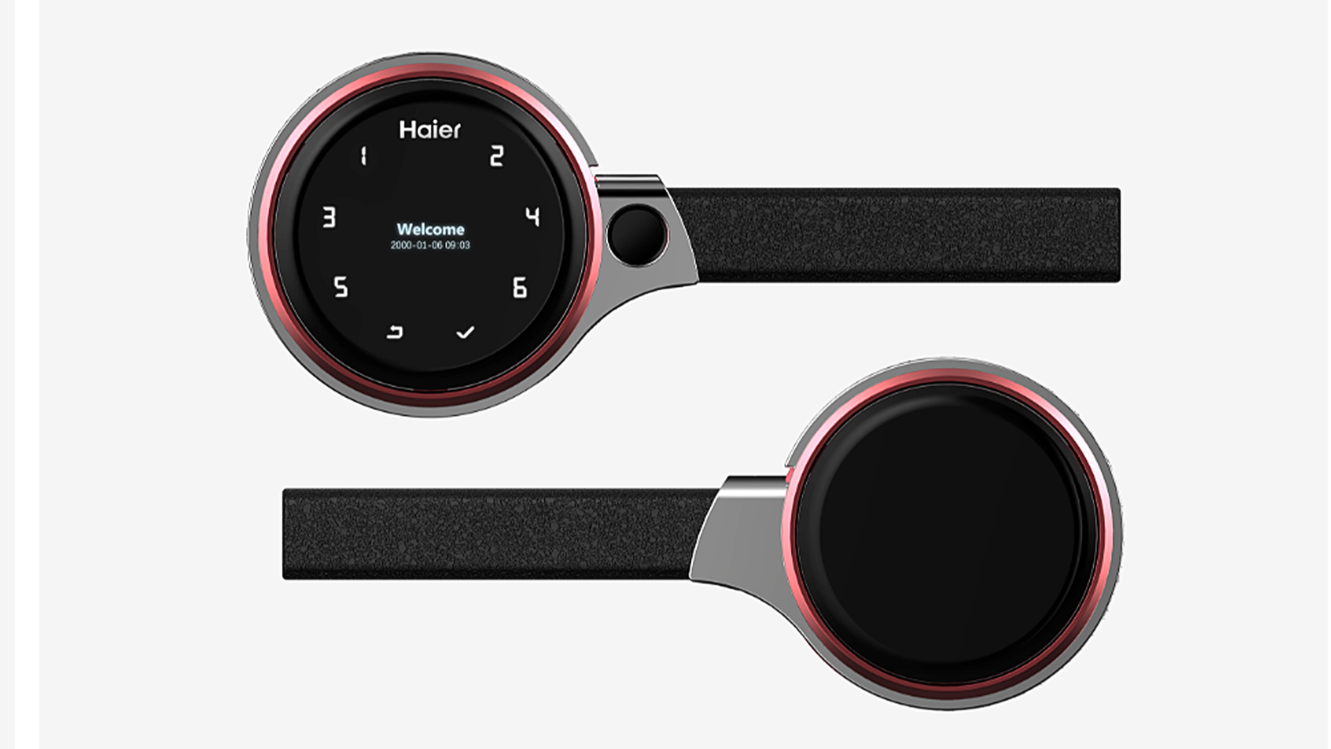 智能門鎖極具突破性的將圓形與環(huán)繞的橫把相結合,在直徑不到10cm的范圍之內(nèi)整合了多種解鎖方式與智能化功能,且將造型與功能性融為一體。圓形的主體部分形成視覺中心“智慧之眼”,中心點形成下凹,猶如神秘的黑洞,中間又泛著具有科技感的呼吸燈光。再外圍的智能化觸控點如群星環(huán)繞,最外圍是精致的金屬邊框的包裹,給人安全、可靠之感。側面用機械式的造型進行裝點,盡顯牢靠、正氣之感。此款智能門鎖將家居安全性做了最大化提升,整合多種前端解鎖方式,并且設置個性化雙重解鎖方式。且摒棄了繁瑣的操作過程,具有更為流暢的人機操作體驗。將門鎖的功能單一化走向多元化,整合了多種方便用戶生活的智能化功能,并且可以與消費者的其它智能產(chǎn)品進行互聯(lián),成為消費者守護家門的“智慧之眼”。?