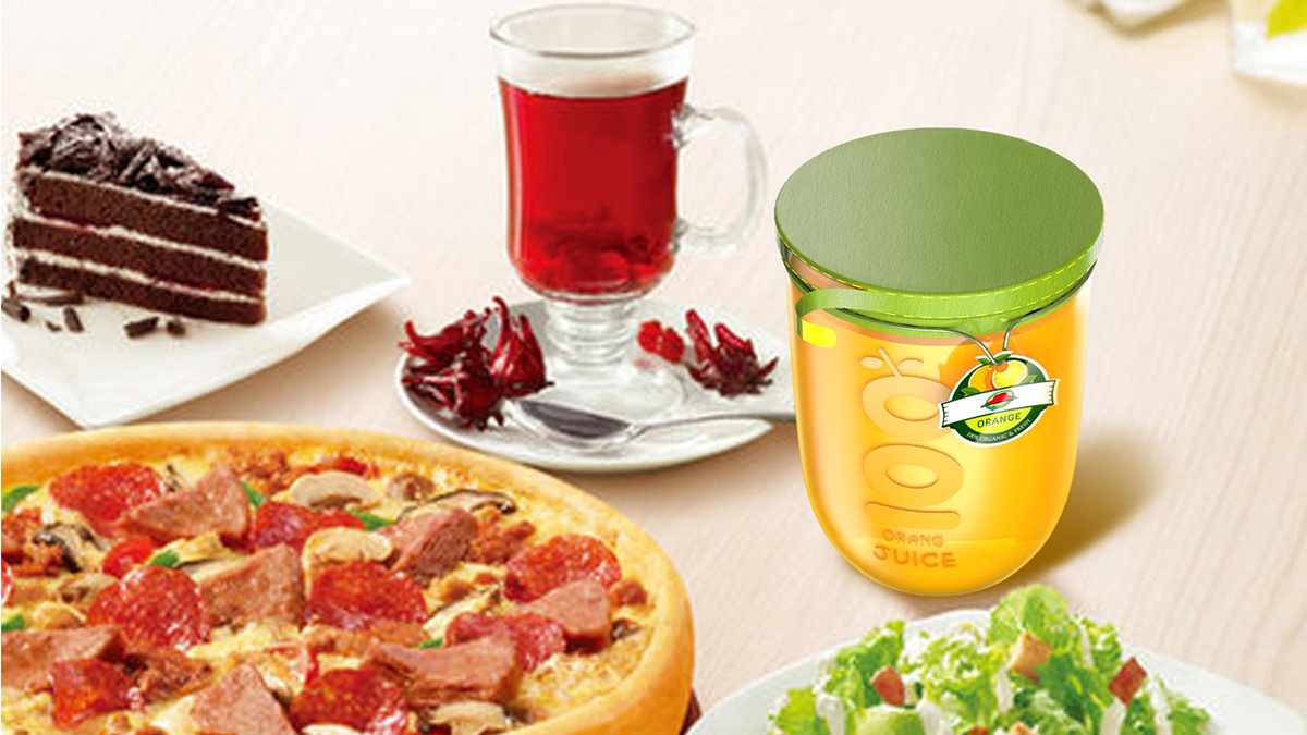 必勝客果汁杯:要新鮮要純正100%感受炎炎夏日新鮮感。飲料杯設(shè)計(jì)主要集中在年輕、活力、新鮮、有價(jià),強(qiáng)調(diào) “100%” 核心產(chǎn)品賣點(diǎn)信息,便于識別,差異化設(shè)計(jì)。開蓋的體驗(yàn)是最能體現(xiàn)產(chǎn)品新鮮的最大賣點(diǎn),采用一次性拉環(huán)式的扣蓋拉環(huán)式的開蓋方式,讓消費(fèi)者真正可以體會到100%果汁的新鮮。體現(xiàn)了產(chǎn)品的唯一性和專屬性獨(dú)特的小標(biāo)簽與拉環(huán)設(shè)計(jì)體現(xiàn)新鮮。