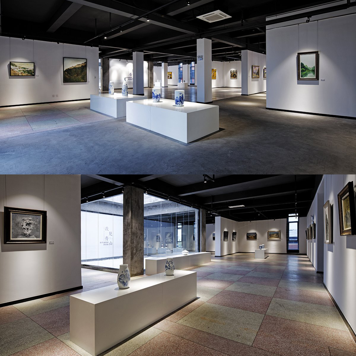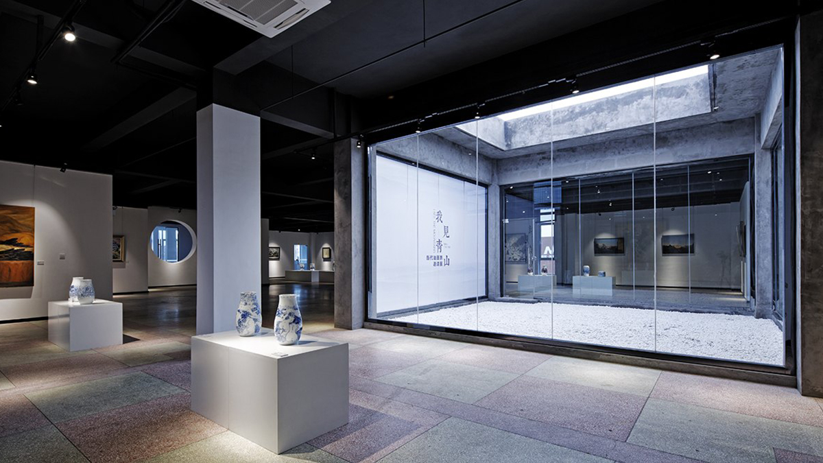 藝術(shù)的生命不為世俗的價值所累,唯有伯樂眼中的凈土,才是其生長蔓延的棲身之所。我見青山,青山有我才為青山,體悟藝術(shù)中含蓄不可捉摸的自我,或是藝術(shù)最初的意義所在。本項目位于藝術(shù)園區(qū)內(nèi),項目將藝術(shù)與公眾生活、文化教育緊密結(jié)合。在設(shè)計中采用園林設(shè)計的敘述方式,做到一步一景,出出成景,在有限的空間中創(chuàng)造別有洞天的生動畫面。整體空間規(guī)劃中,還規(guī)劃設(shè)計了會議區(qū)、觀眾休息區(qū)、餐飲區(qū)等功能區(qū),旨在增加空間附加值,同時提升觀者的觀展體驗。
