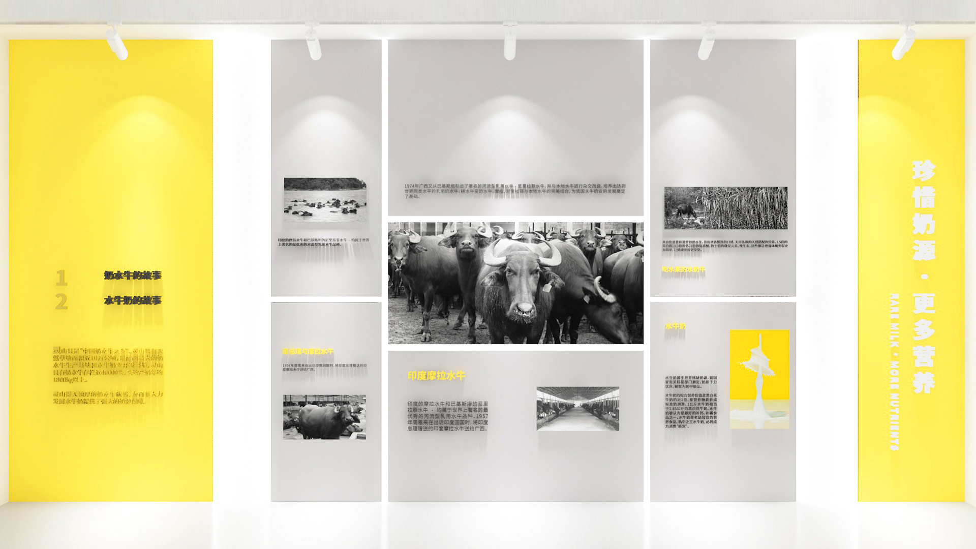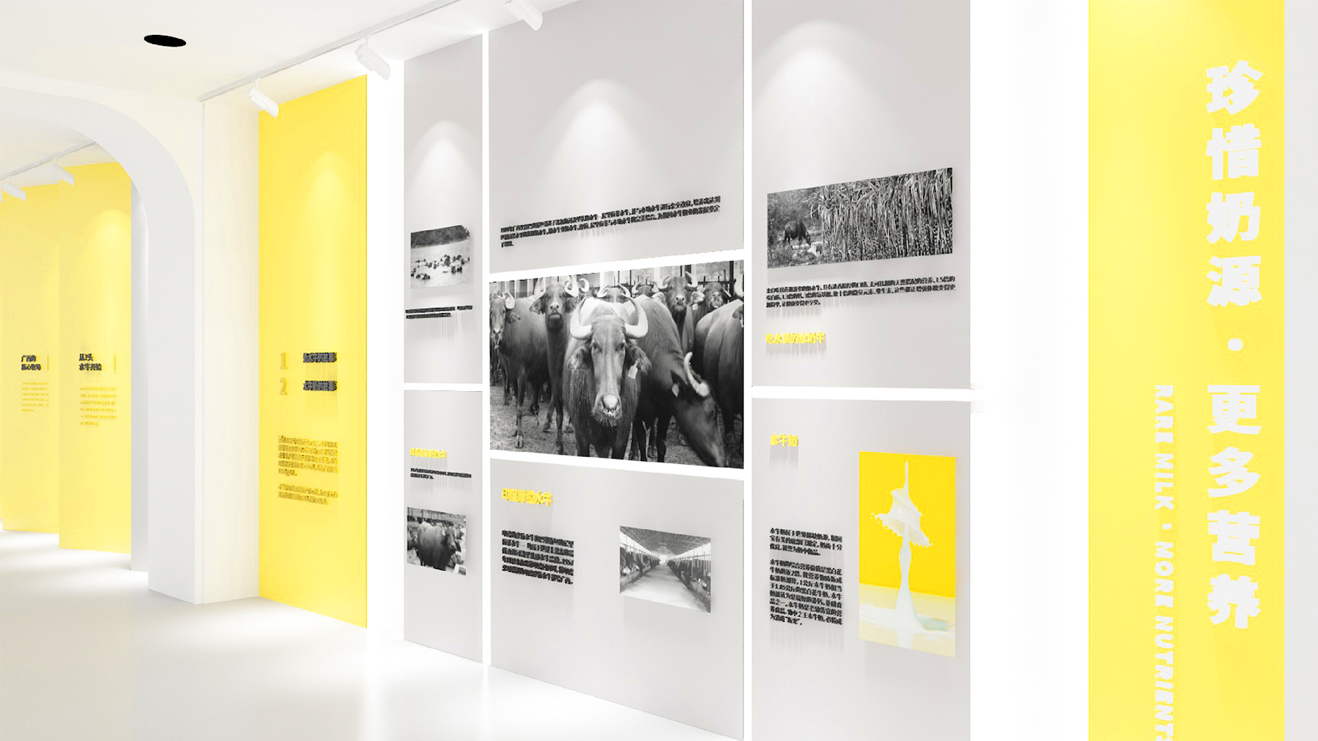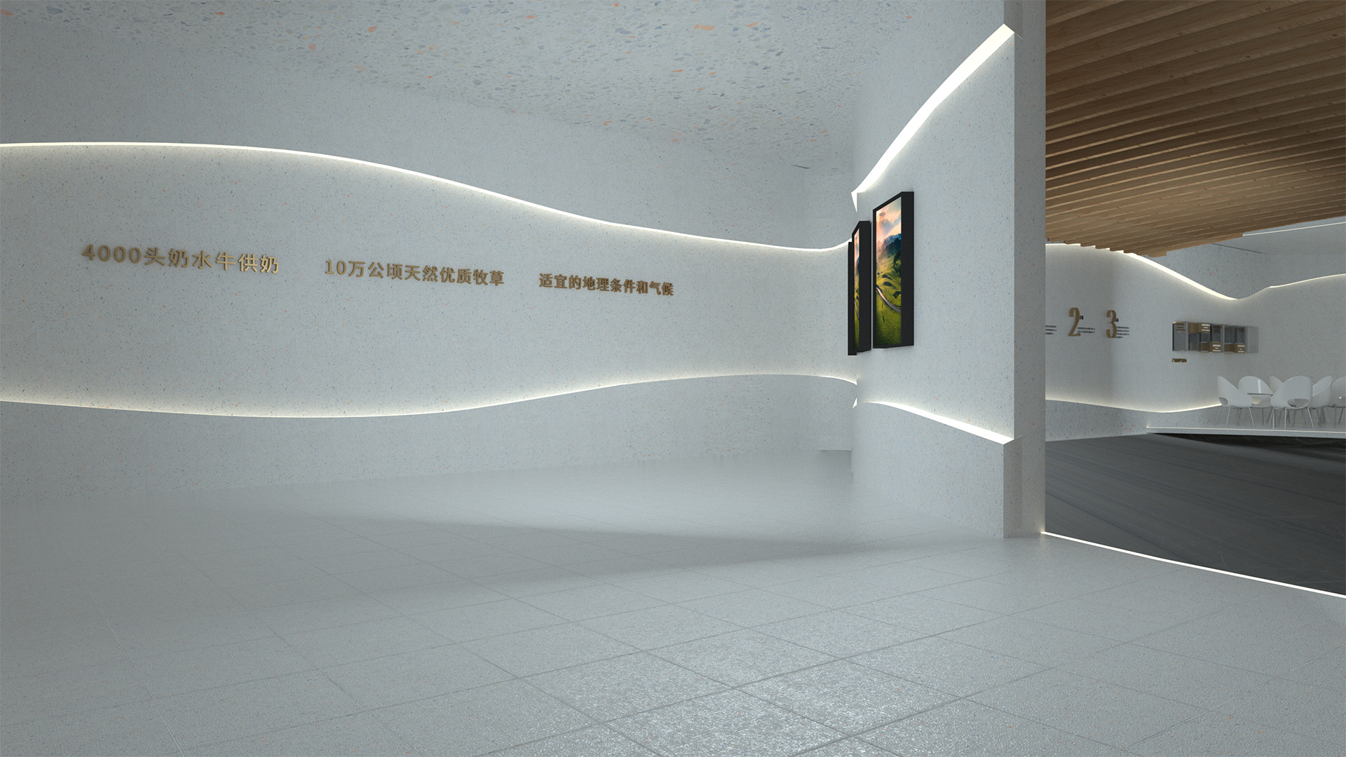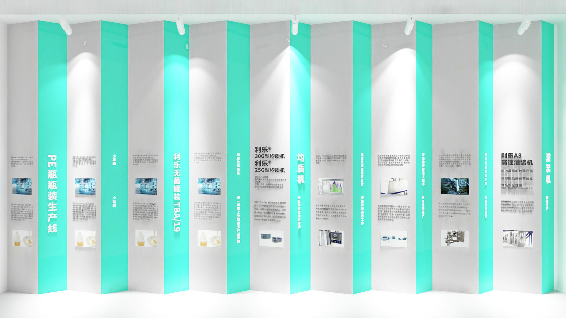總控室后的玻璃,因為參觀走廊顏色比較豐富,考慮到如果這里也做色彩或者比較復雜的設(shè)計,會造成是視覺混亂,所以我們把這扇玻璃上的遮擋裝飾設(shè)計成和墻面一樣的白色,放上slogan,這樣整體比較統(tǒng)一自然。