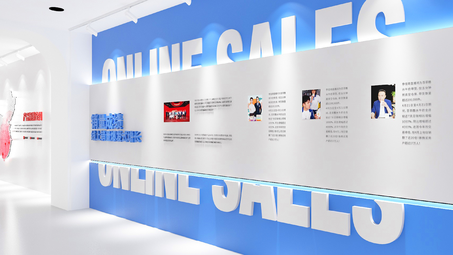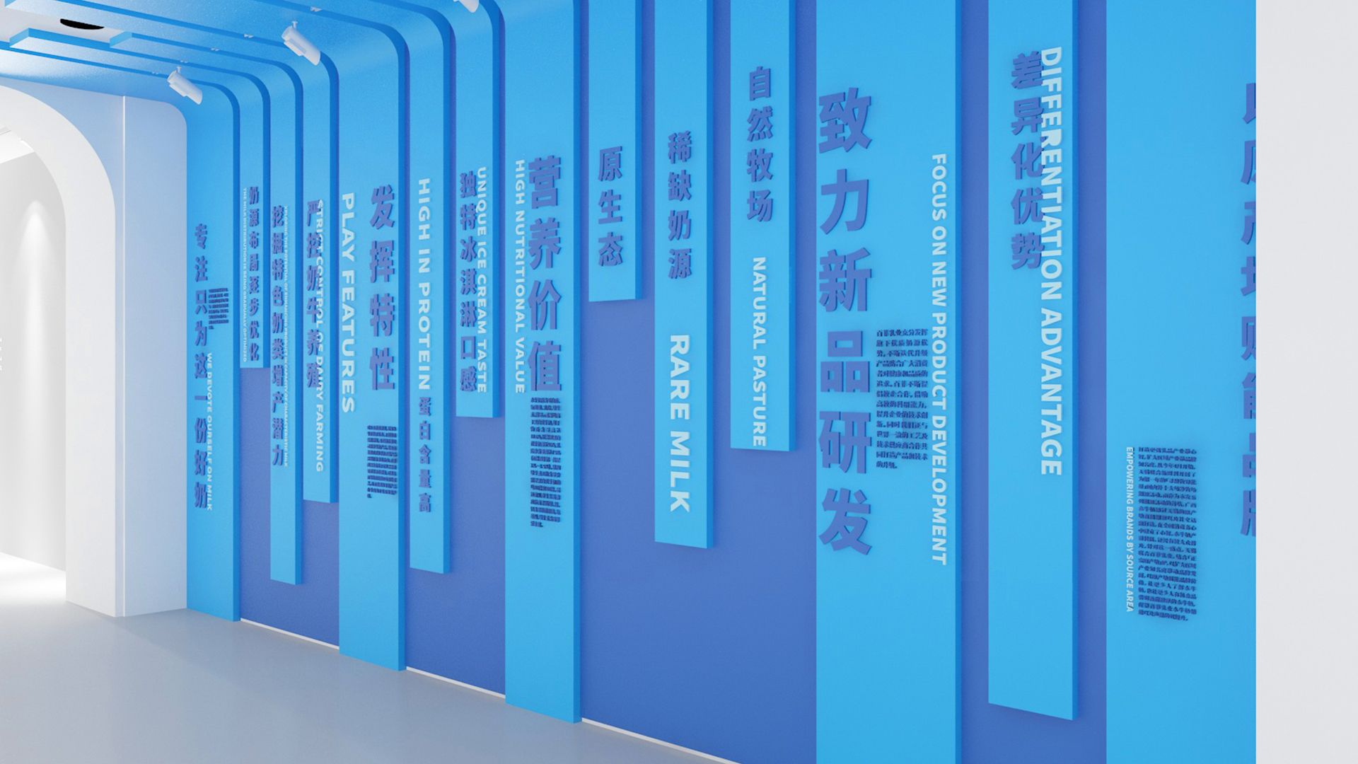 長廊文化墻以彩虹為創(chuàng)意,依次講述百菲從0-1的品牌故事。色彩明亮讓人眼前一亮,顏色的變化與豐富讓人更有興趣。彩虹寓意著美好。百菲一路保持初心,專注研發(fā)保證品質(zhì),最終好的產(chǎn)品被消費者認可,雨后彩虹好運會一直陪伴。